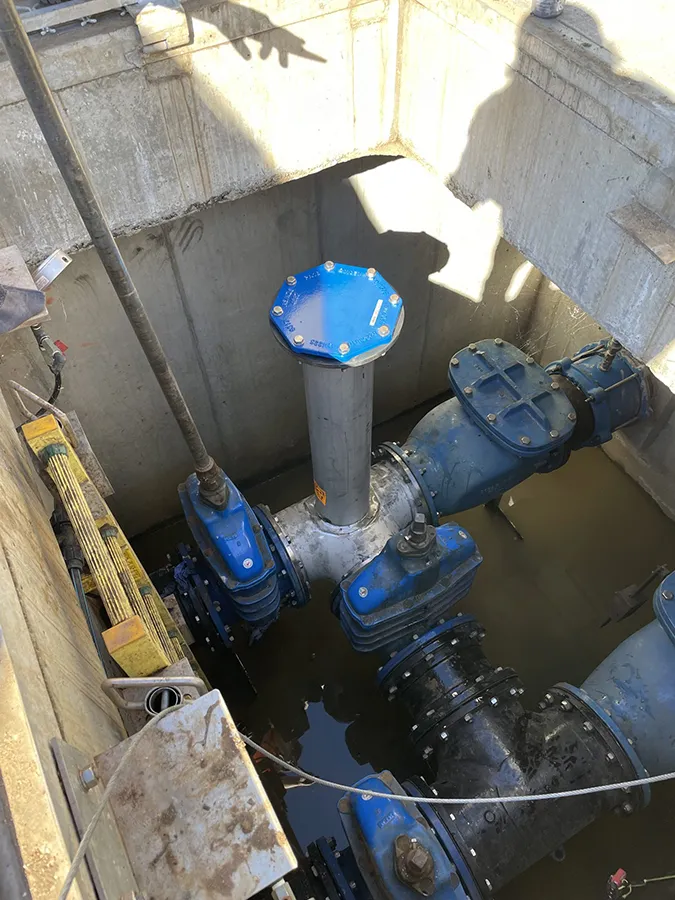 - Installation of custom TEE to Market square pump station valve pit for by-pass operations.