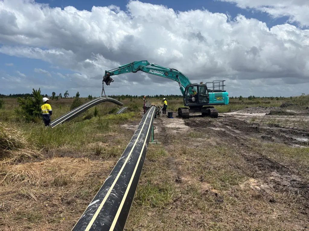 - Over 500m of OD450 and OD315 HDPE rising main via Horizontal directional drilling below environmentally sensitive Bells creek.